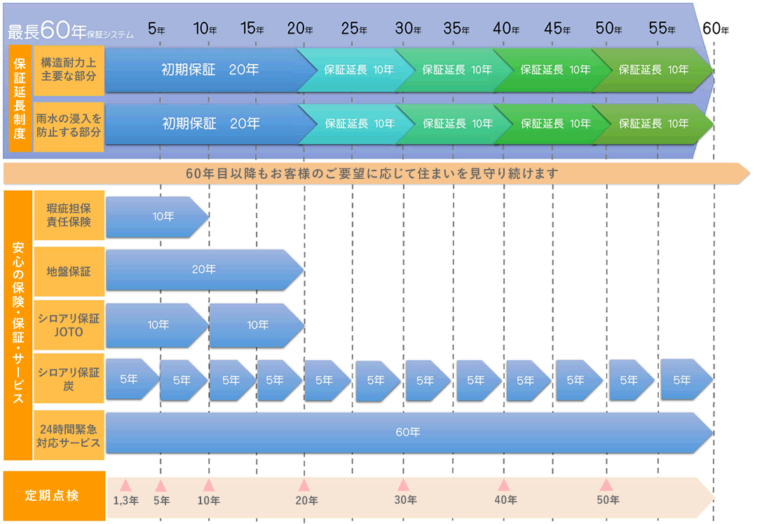 保証05建築後、60年間の長期メンテナンス保証