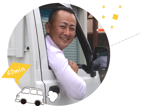 緊急な時こそ、一刻も早く事態を収拾させたいもの。そんな時こそ、すぐに対応できるように当社では、建築エリアを片道60分以内に制限しています。