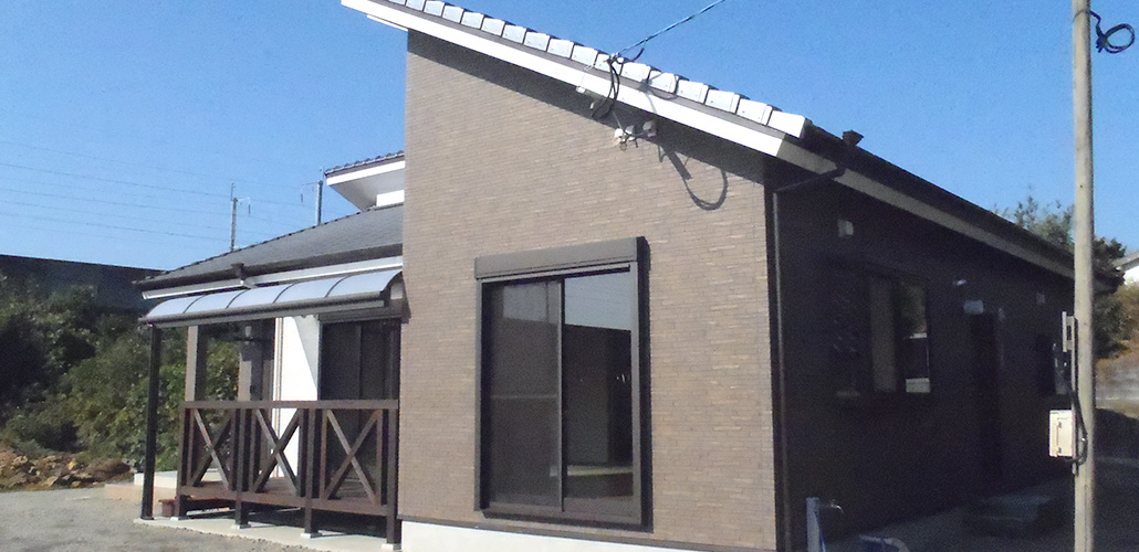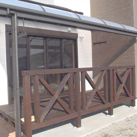 全てが片流れ屋根で構成された外観になっております。 施主様の要望により、ウッドデッキを設置しました。
