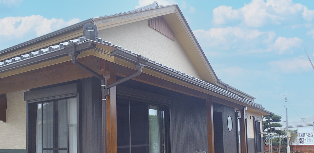 お施主様の要望により屋根に瓦と銅板を使用した二段屋根とし和風に仕上げました。