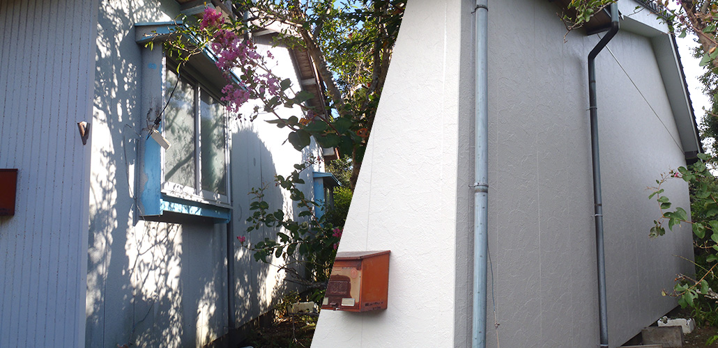 雨漏り等経年劣化による痛みが起こり改修工事を行いました。 トタン壁からサイディング壁に張替。