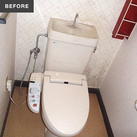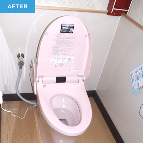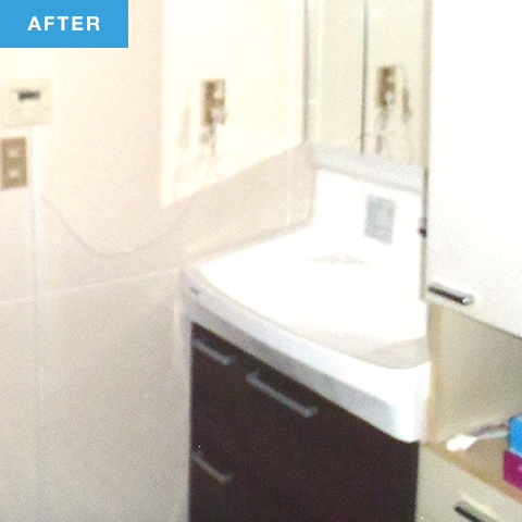 便器と腰壁をやりかえました。腰壁はキッチンパネルを応用して使用しています。洗面台も新しくして、シミになっていた内壁も新しくきれいにしました。